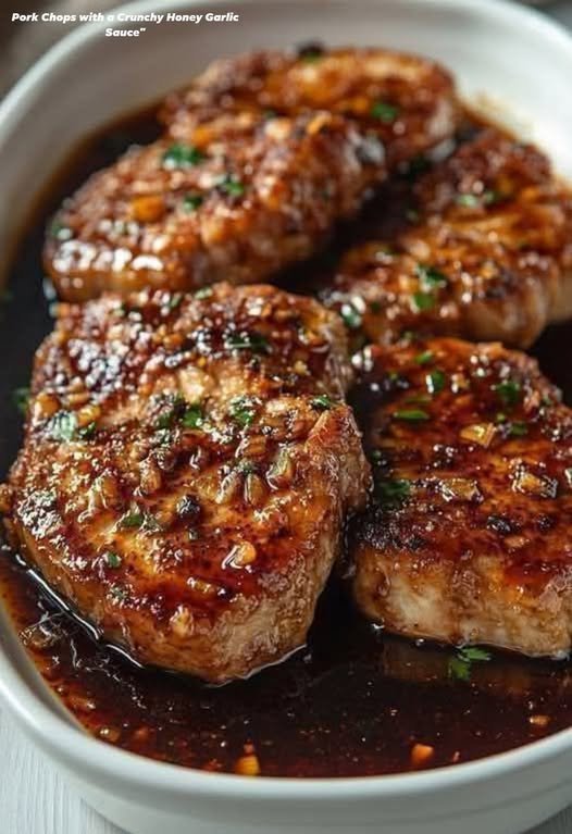 Pork Chops with a Crunchy Honey Garlic Sauce”