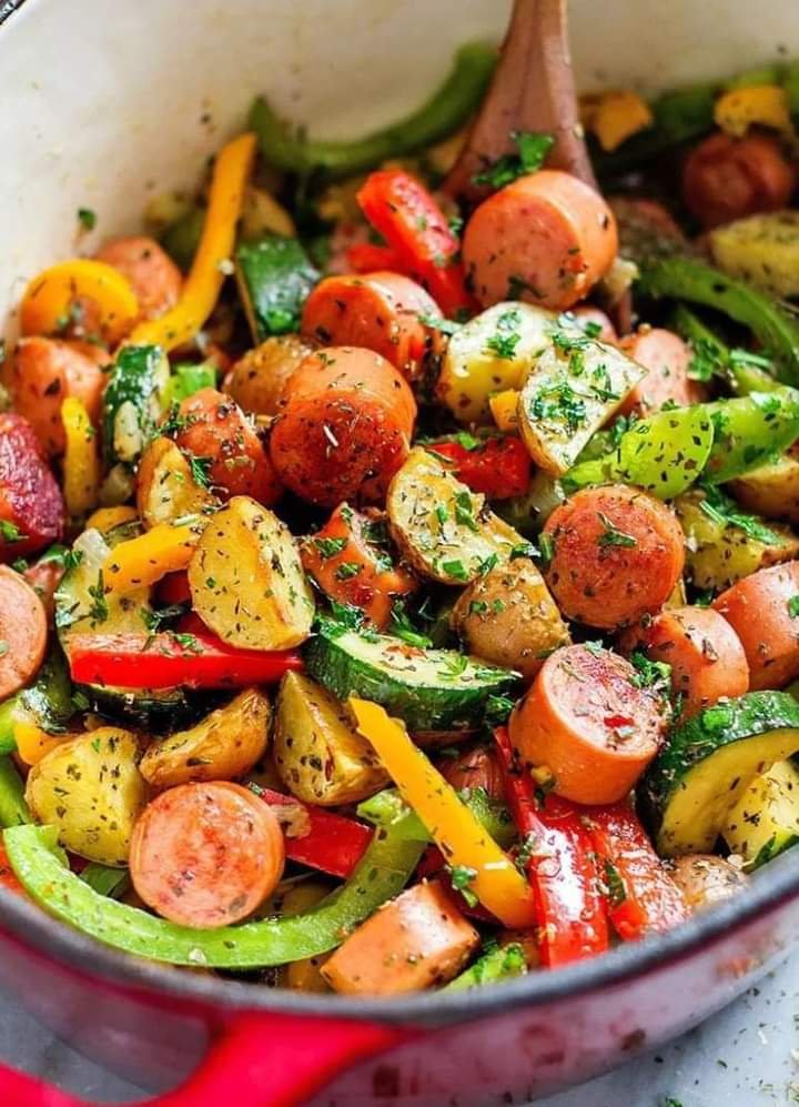This 20-Minute Healthy Sausage and Veggies One-Pot recipe features savory sausage, colorful veggies, and seasonings, all cooked together in one pan for a quick, nutritious meal!