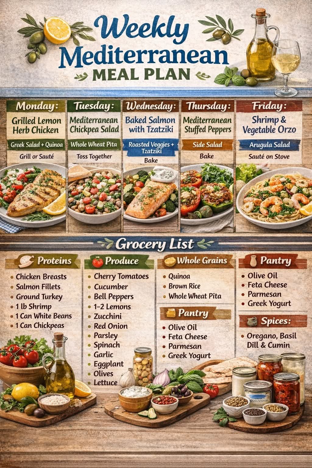 A light, protein-rich, Mediterranean-inspired meal.