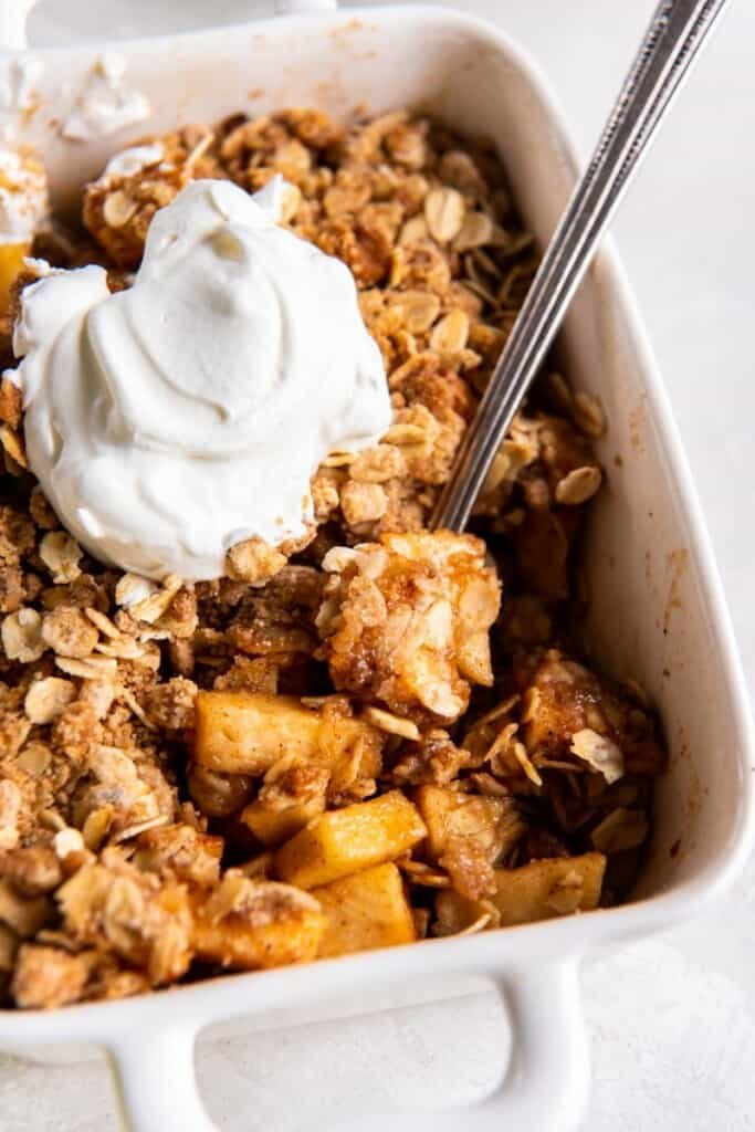 A delicious dish that just takes 30 minutes to prepare is about to happen! Delicious roasted apples and a crispy streusel topping make this air fryer apple crisp for two a must-try.