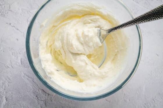 - In a bowl, mix together the cream cheese and ricotta as it cooks.
