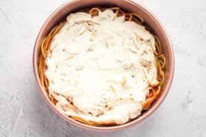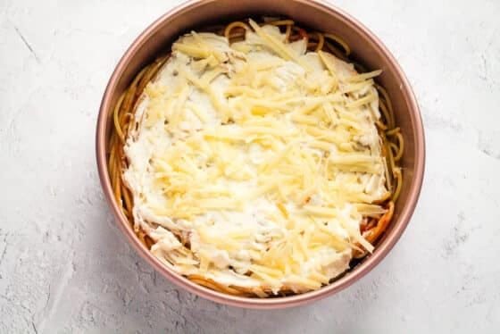 - Although it’s assumed in my recipe that you prepare the spaghetti from scratch, you don’t have to! This is a great way to use up cold leftover spaghetti that you may have in the fridge. Since spaghetti gets rather starchy and sticky after being stored, using leftover spaghetti would actually result in a firmer, more “set” spaghetti bake.