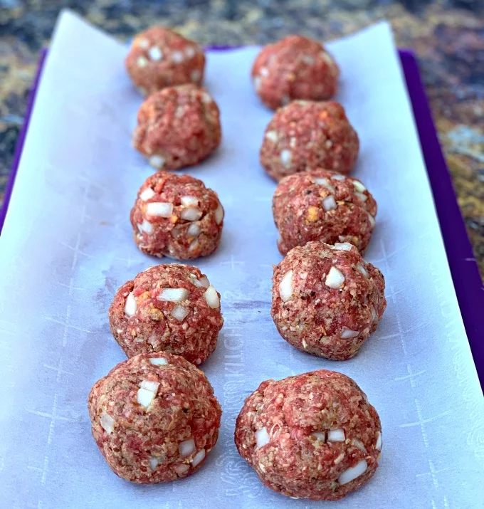 Combine the ingredients with clean hands to make a single, big ball. - Form 10 smaller meatballs using a spoon.