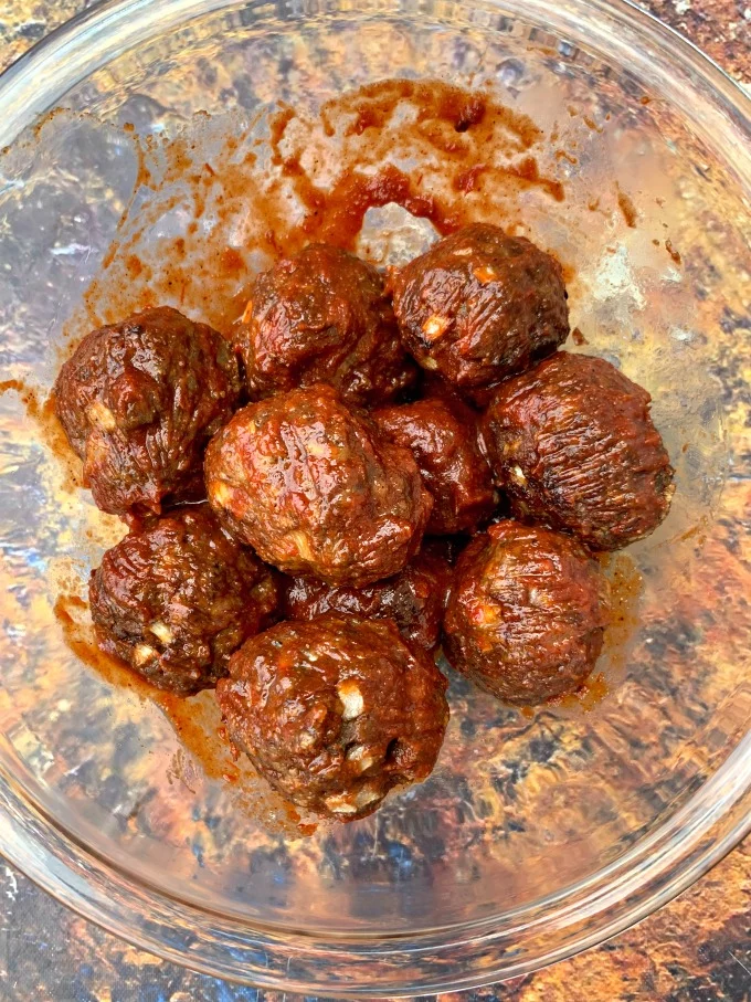- After taking the meatballs out of the air fryer, cover them with BBQ sauce.