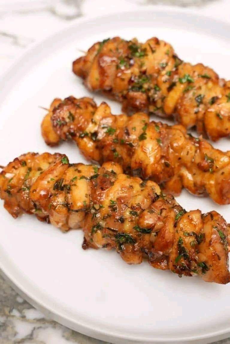 These juicy chicken skewers from the air fryer make the ideal evening dinner. They are lavishly coated with an amazing garlic herb butter after being gently marinated in a mixture of delectable spices! The finest aspect? They are simple and quick to complete—less than an hour!