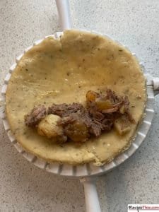 3. After creating all of the pasty circles, place each one into your pasty cutter one at a time. Make sure not to overfill the pasty when you load the stew filling into one side of it.