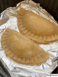 5.After that, put foil inside the air fryer basket and brush egg wash over the pasties’ tops.
