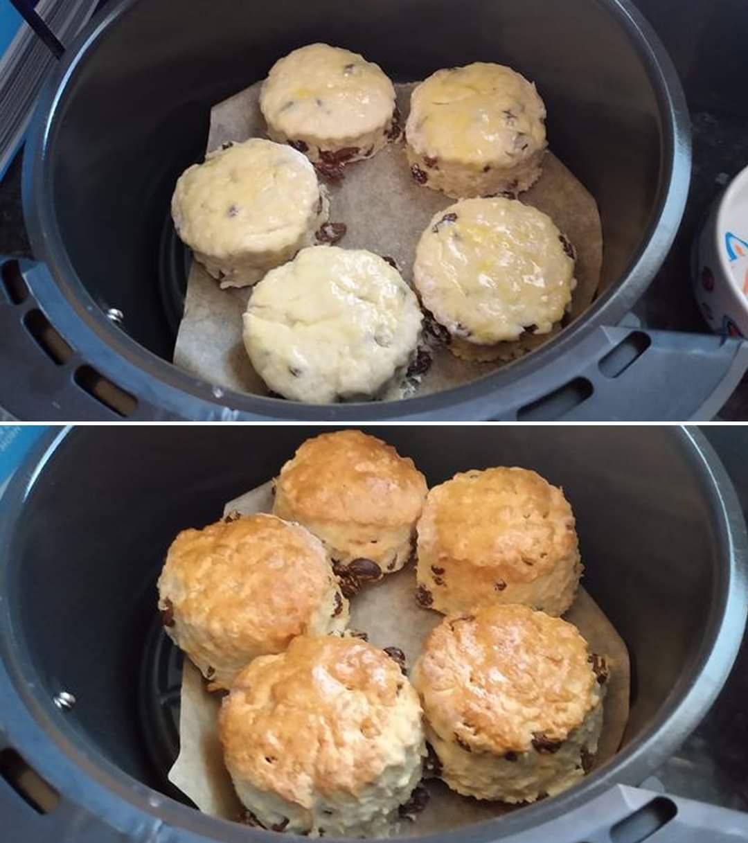 - In a small bowl, combine the flour, sugar, and salt. After that, mix until a coarse texture is achieved by folding in the butter and egg. Stir in the currants, cream, and vanilla. Blend thoroughly. Add a little sugar on the top. After that, cook the currant scones in the air fryer for 5 to 9 minutes at 330 degrees Fahrenheit, or until they are thoroughly cooked.