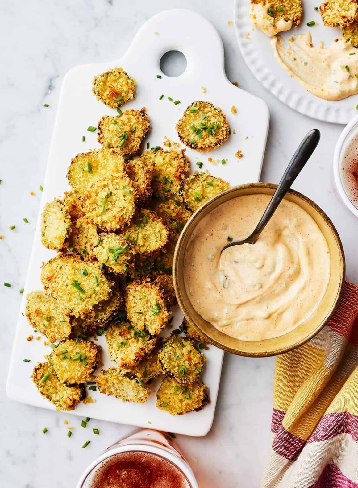 Crispy, crunchy, and completely addictive, these air fryer fried pickles are such a fun, easy appetizer! We love them with remoulade sauce, but they’d also be great with my chipotle sauce or chipotle ranch dressing.