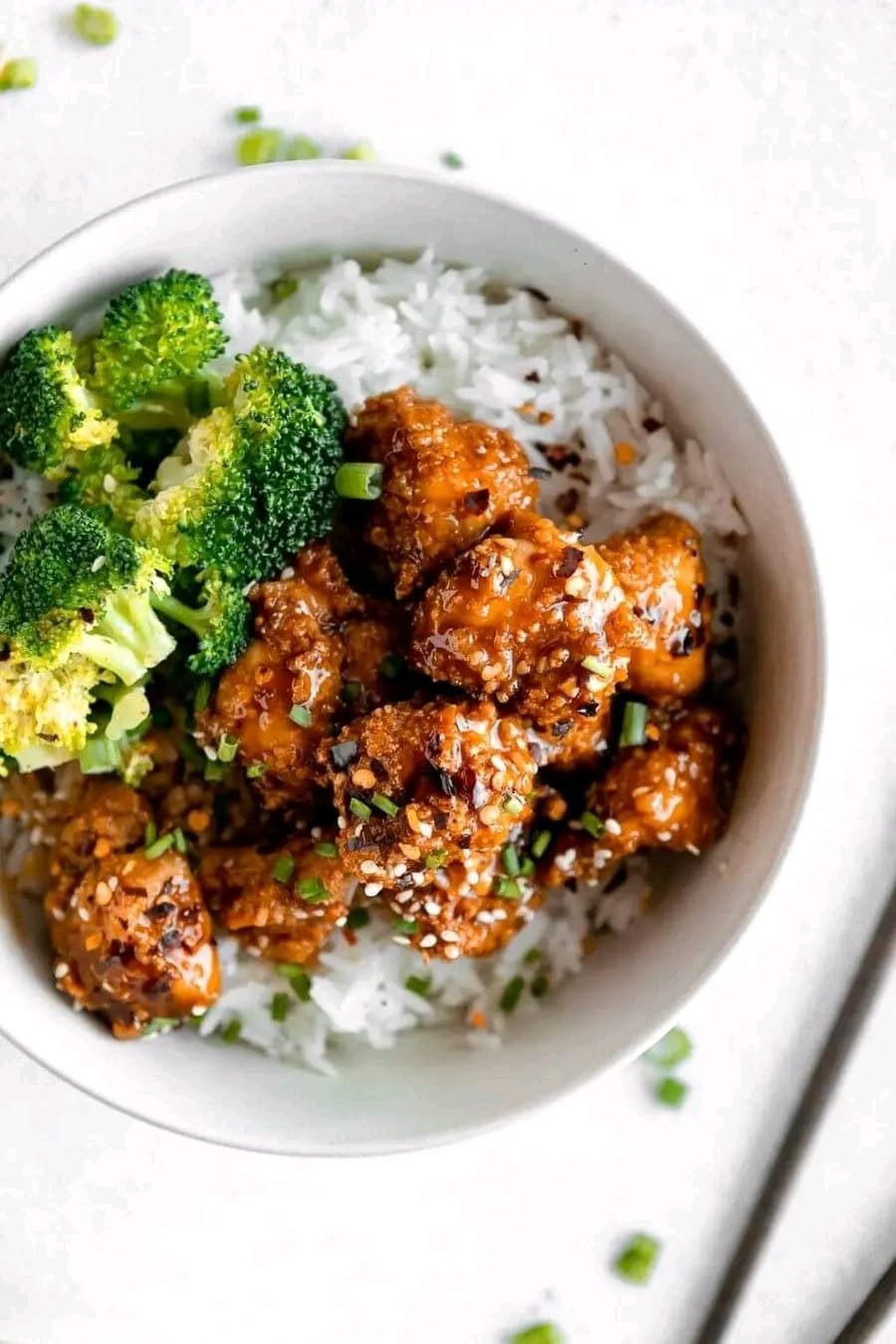 This flavourful, crispy orange chicken cooked in an air fryer is really simple to prepare. It assembles in roughly 30 minutes and is naturally devoid of processed sugar, dairy, and gluten.