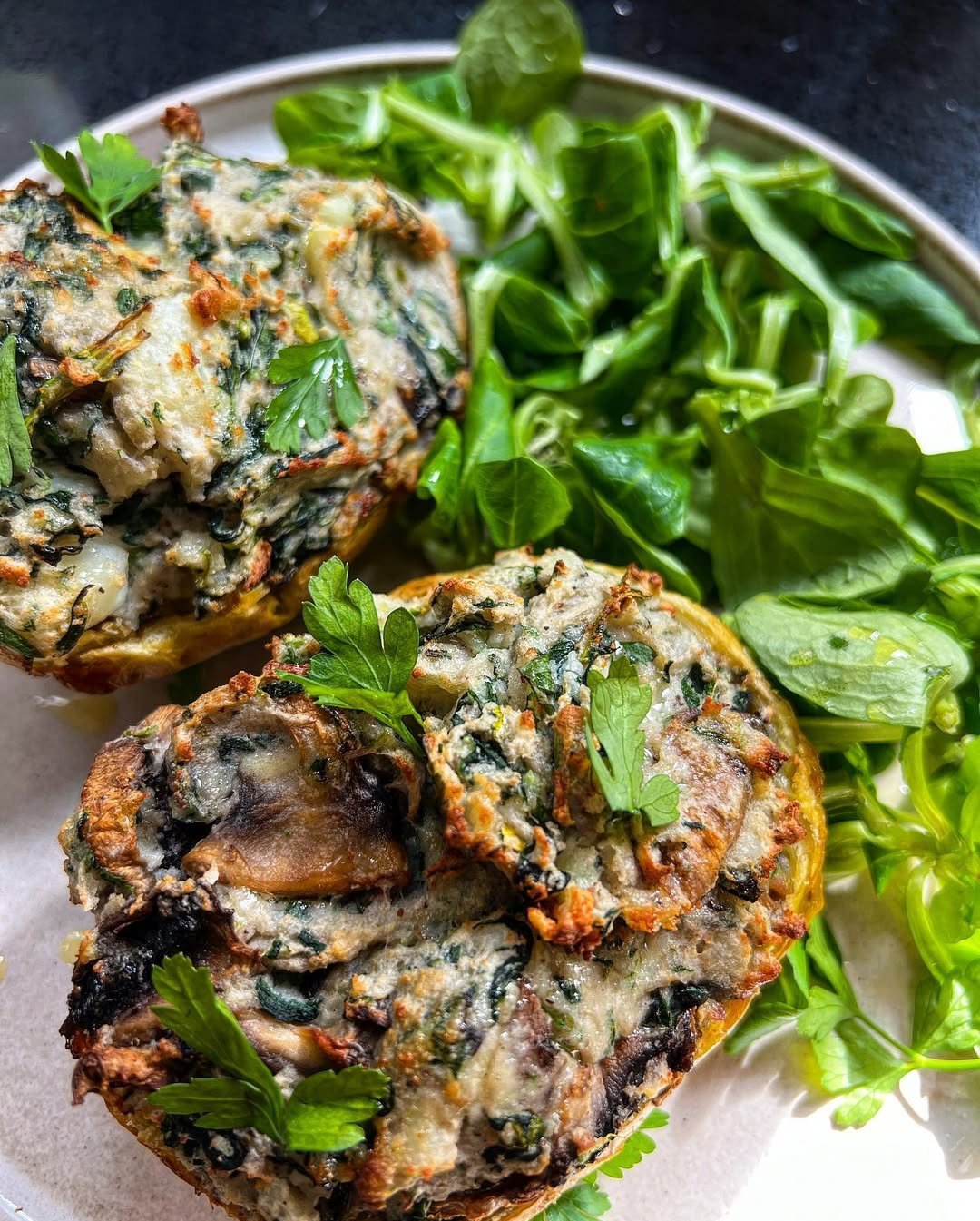 Whole potatoes air-fried until perfectly crisp, then scooped and mixed with a creamy, savory filling and baked again until golden. Ideal for lunch, dinner, or a hearty snack.