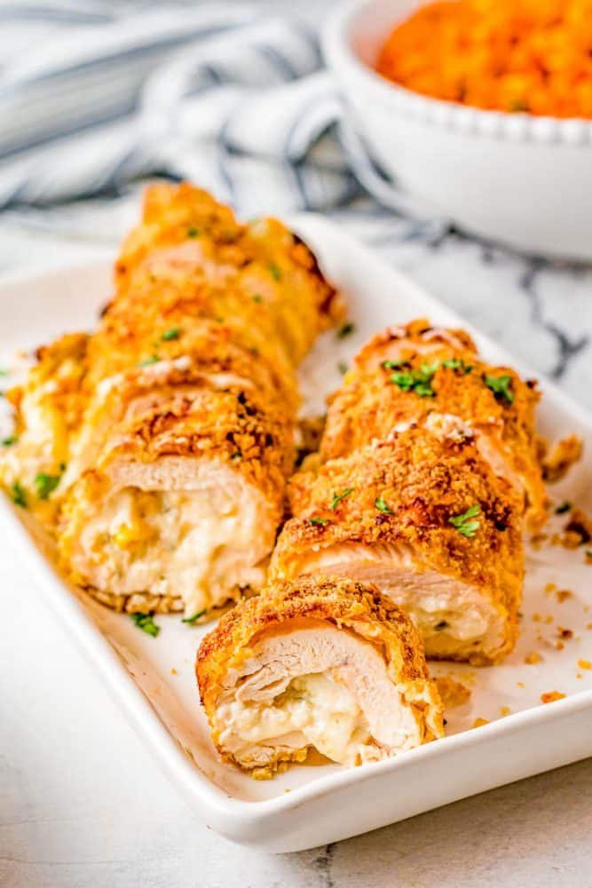 These stuffed chicken rolls are created with flattened chicken breasts and a spicy, cheesy, corn stuffing that gives this outstanding chicken supper a Mexican flair! They are crispy on the exterior and soft and cheesy on the inside! Simply air fry it to make a guilt-free chicken roll instead of frying it in oil.