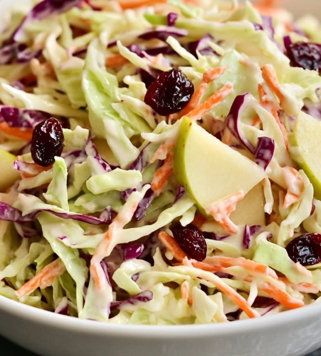 A refreshing and colorful coleslaw with crisp apples, tart dried cranberries, and a creamy dressing. This salad is the perfect balance of sweet and tangy flavors, making it a great side dish for BBQs, holiday meals, or a light lunch.