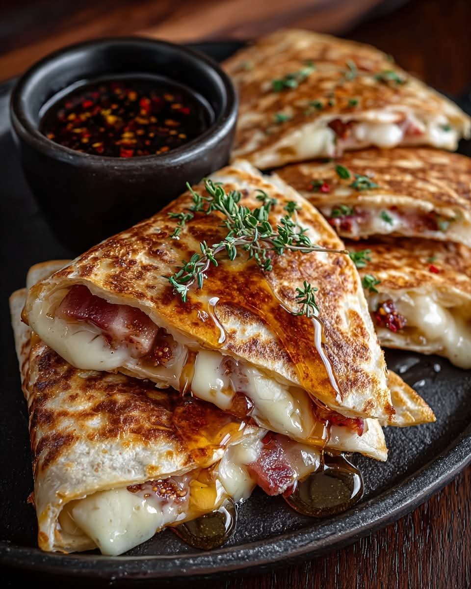 Apple Fig Brie Quesadillas with Hot Honey