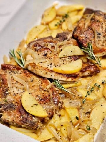 Serve warm with the apple mixture spooned over the pork chops.