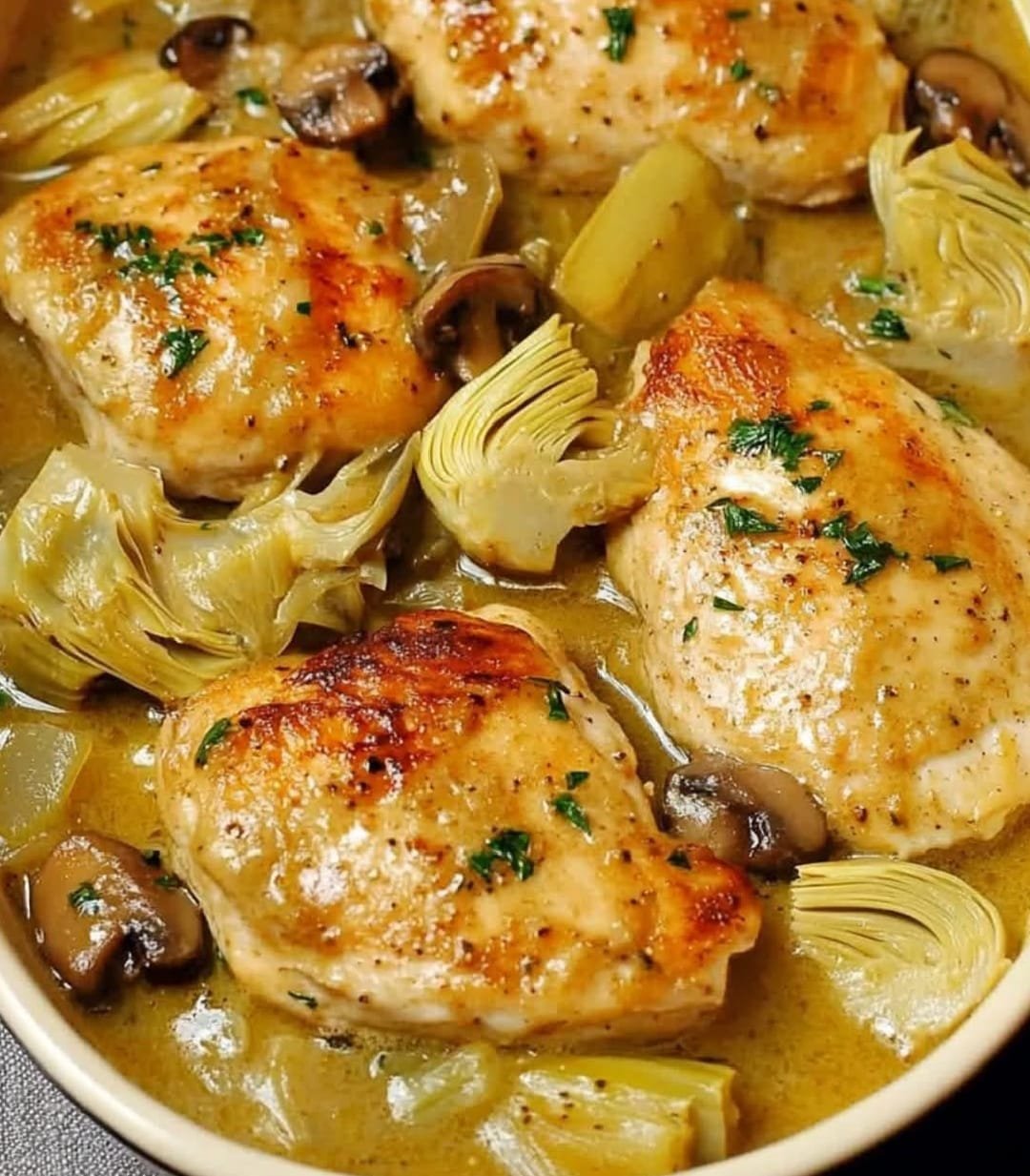 This Artichoke Chicken is a flavorful and creamy dish featuring tender chicken breasts baked with artichoke hearts, Parmesan cheese, garlic, and a rich sauce. This easy-to-make recipe combines simple ingredients to create a satisfying, comforting meal. Perfect for weeknight dinners, potlucks, or even dinner parties, it’s a crowd-pleaser that pairs beautifully with pasta, rice, or a side of steamed vegetables.