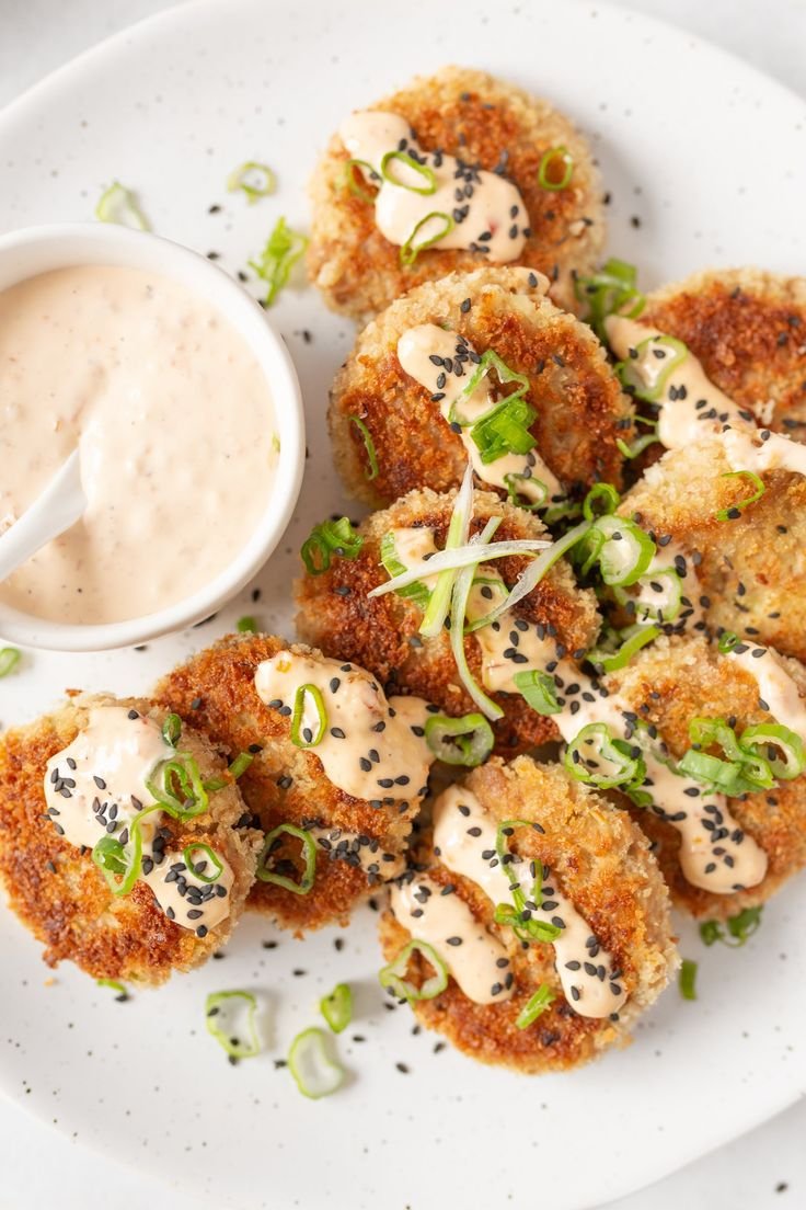 Lightly seared tuna cakes with sesame, ginger, and scallions, served with a creamy spicy mayo. Perfect as an appetizer, lunch, or kid-friendly dinner if spice is mild.