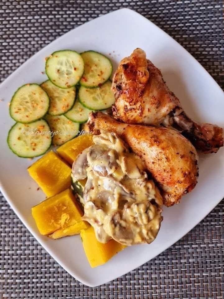 Roasted Chicken Drumsticks with Creamy Mushroom Veggie