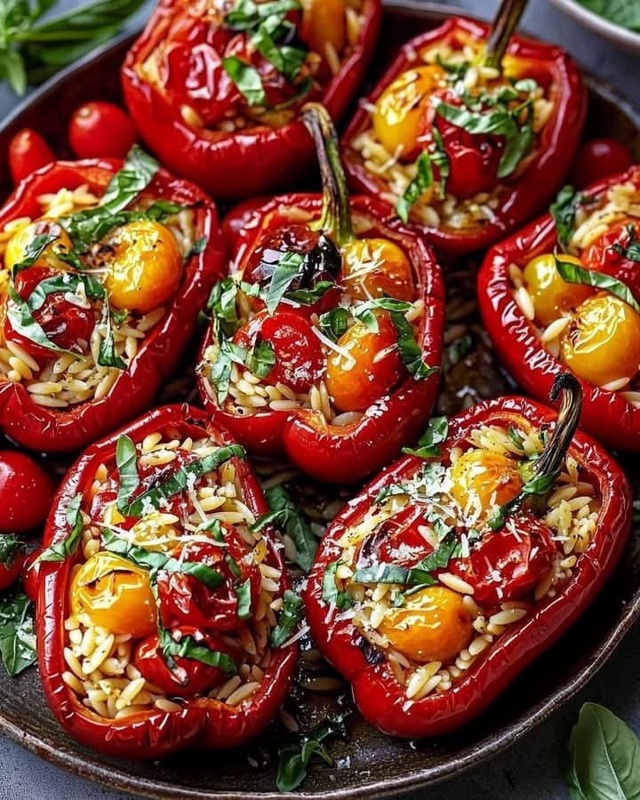 Roasted Red Peppers Stuffed with Orzo & Basil These roasted red peppers stuffed with tender orzo, fresh basil, and savory ingredients like garlic, parmesan, and tomatoes are a vibrant, Mediterranean-inspired dish perfect for a light dinner or elegant side. This vegetarian recipe is easy to prepare and packed with flavor, making it a great addition … Read more