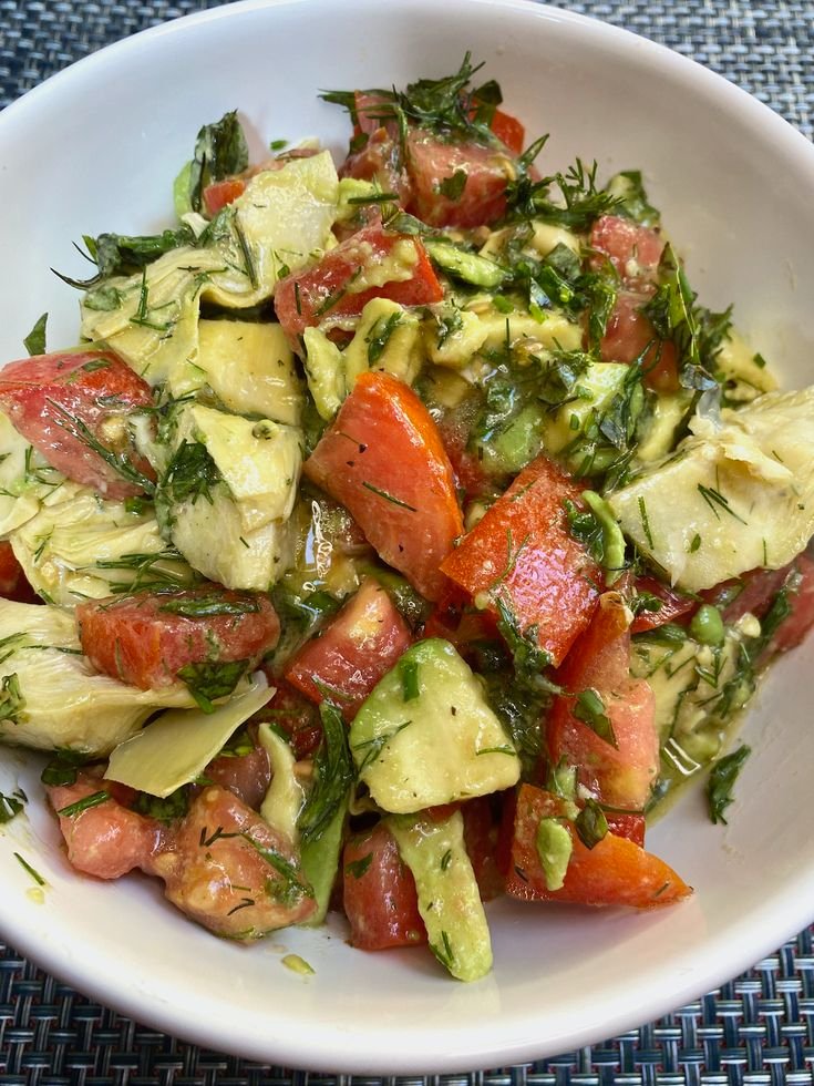 This Avocado Artichoke and Tomato Salad with Cashew Sauce Dressing is fresh, creamy, and deeply satisfying—without any dairy. It’s Mediterranean-inspired, non-spicy, plant-based, and perfect as a light meal, elegant side dish, or premium recipe for your website.