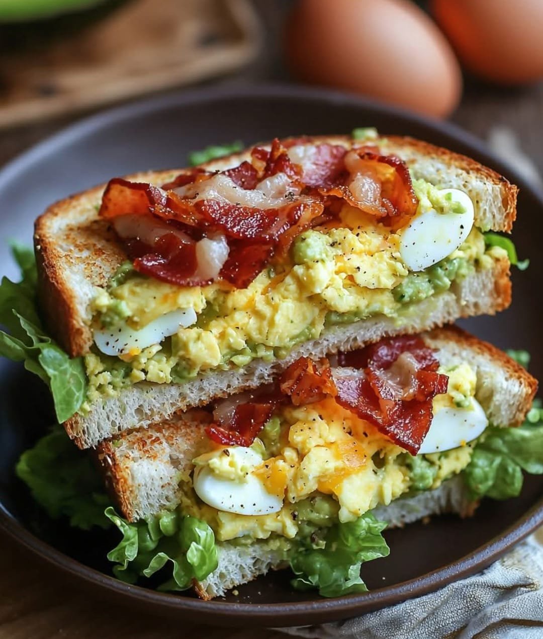 This sandwich is a creamy, crunchy, and satisfying twist on the classic egg salad. Mashed avocado replaces much of the mayo, giving you healthy fats and vibrant flavor, while crispy bacon adds savory depth. It’s perfect for breakfast, lunch, or a protein-packed snack—and can be served on toast, in wraps, or lettuce cups for a low-carb version.