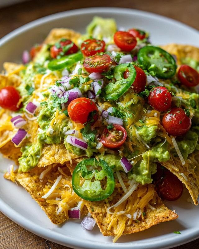 Crispy tortilla chips topped with creamy avocado, melted cheese, fresh tomatoes, herbs, and a bright lemon-yogurt drizzle. It’s a lighter, fresher twist on classic nachos — no heaviness, all flavor.