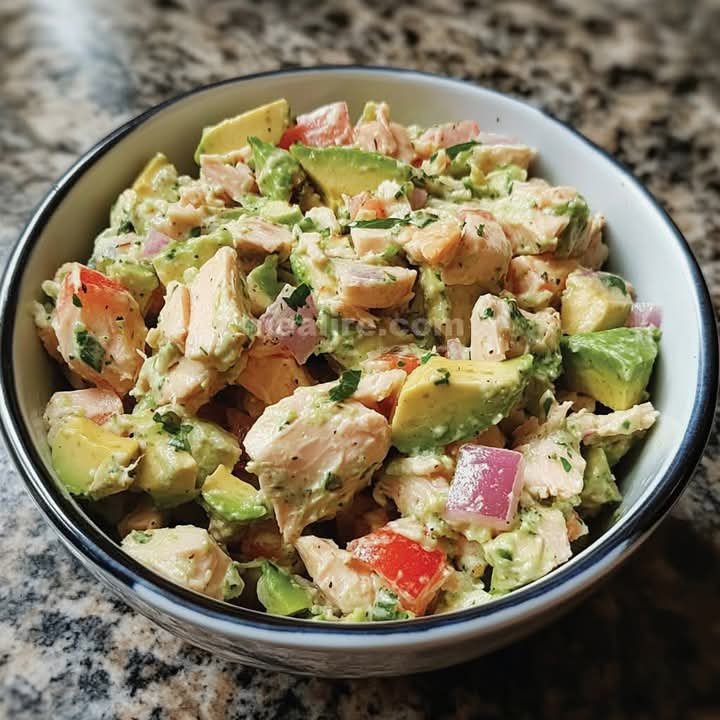 Fresh mix of diced tuna, avocado, onion, and lemon juice, perfect for a light, protein-rich snack.Indulge in the creamy freshness of our Avocado Tuna Salad! This protein-packed salad combines the richness of avocado, the tender flakiness of tuna, and the tangy crunch of red onion, all tied together with a zesty lemon dressing.