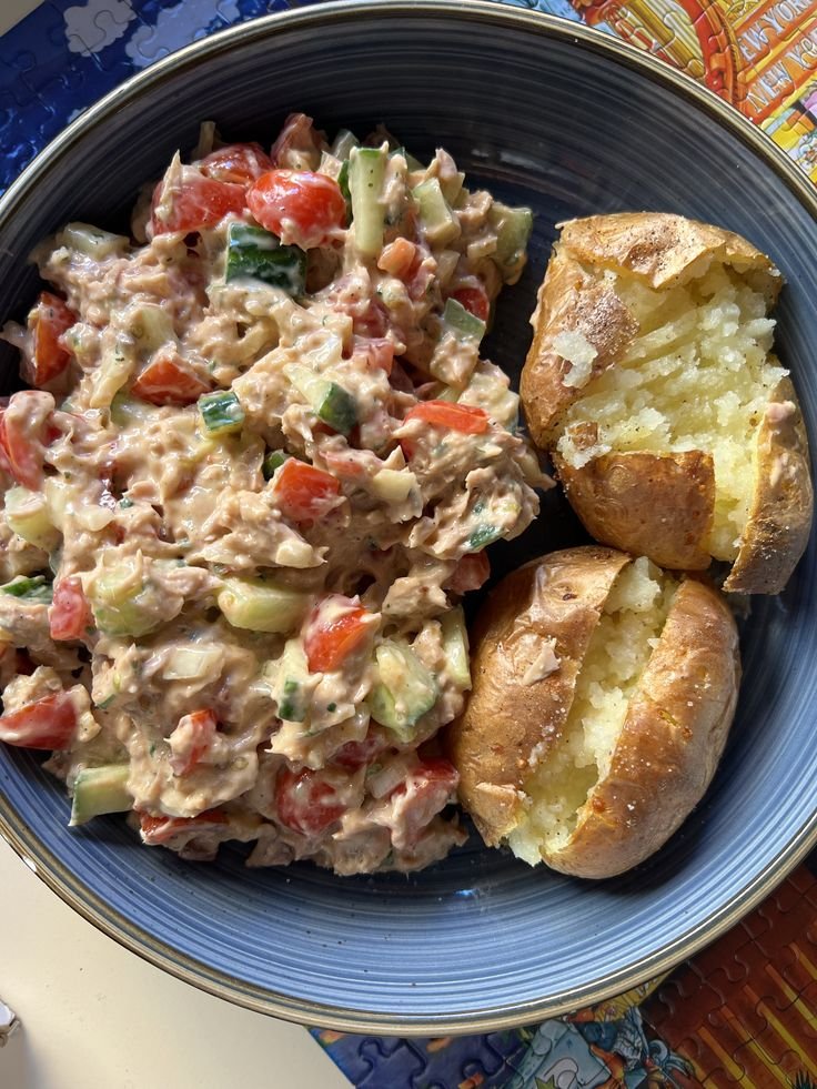 This Baked Potatoes and Tuna Salad dish is a healthy, protein-packed, and satisfying Mediterranean-inspired meal. Fluffy baked potatoes are topped with a light and flavorful tuna salad, making it perfect for lunch, dinner, or meal prep. It’s non-spicy, high-protein, and easy to make.