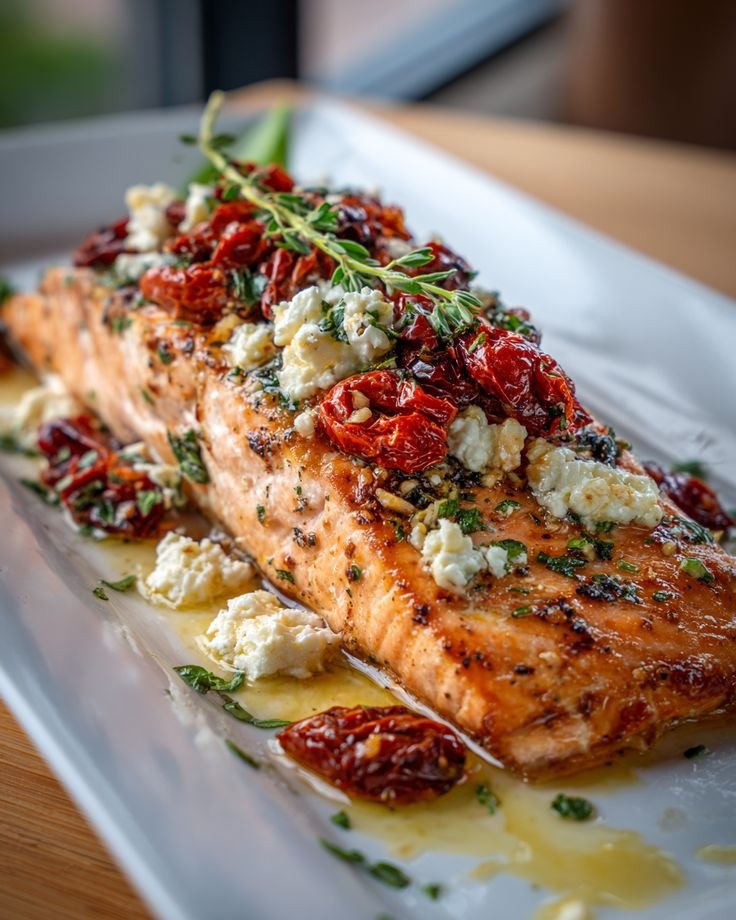 Mediterranean Baked Salmon with Feta & Sun-Dried Tomatoes