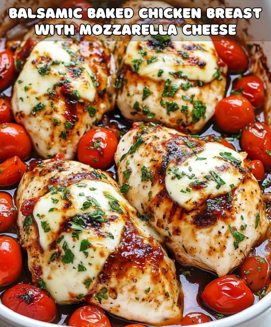 This Balsamic Baked Chicken Breast with Mozzarella Cheese is a simple yet flavorful dish that combines juicy, tender chicken breasts with the rich tang of balsamic glaze, melted mozzarella cheese, and fresh tomatoes. Each bite is savory, slightly sweet, and delightfully cheesy. The balsamic glaze caramelizes as it bakes, creating a beautiful balance of flavors, while the mozzarella adds a satisfying creaminess. Garnished with fresh basil, this dish brings Italian-inspired comfort to your dinner table and pairs perfectly with pasta, rice, or a side of steamed vegetables.