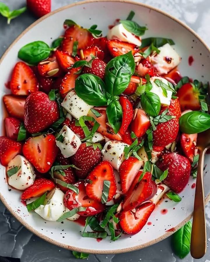 This fresh and vibrant salad is a fruity twist on the classic Caprese. Sweet strawberries, creamy mozzarella, fragrant basil, and a tangy balsamic reduction come together for a dish that’s perfect for spring or summer. It’s refreshing, light, and ideal as an appetizer or a side.