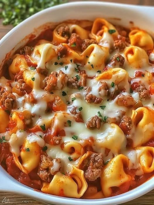 Indulge in the hearty, comforting goodness of this Beef and Cheese Tortellini Bake! This satisfying casserole combines the tender bite of cheese-filled tortellini with the rich flavor of ground beef and a blend of creamy cheeses.