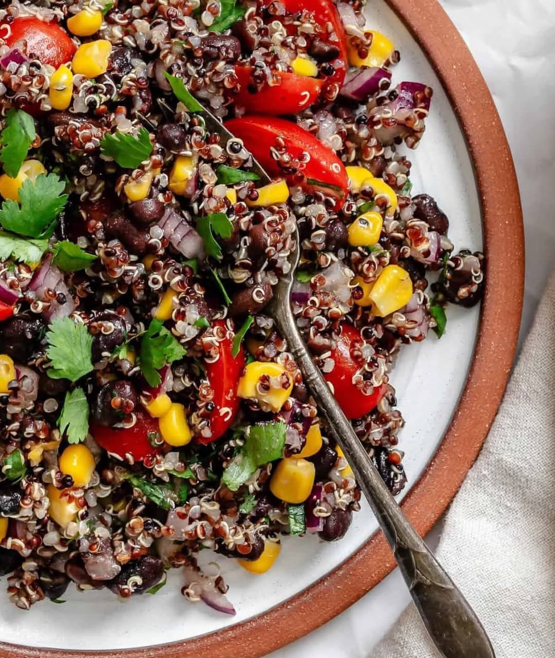 This colorful salad is a wholesome mix of black beans, quinoa, crisp veggies, and a tangy cilantro-lime dressing. It’s naturally gluten-free, vegan, and loaded with plant-based protein and fiber.
