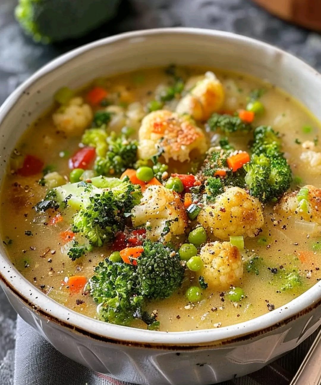 Broccoli Cauliflower Soup is a creamy, comforting, and nutritious soup made with fresh broccoli and cauliflower, simmered in a flavorful broth, and blended into a smooth, velvety texture. It’s a hearty, satisfying dish that’s perfect for a light lunch, dinner, or as a starter. The combination of these two cruciferous vegetables creates a balanced, nutrient-rich soup that is both rich in flavor and easy to make. It can be enjoyed as is or topped with a sprinkle of cheese, fresh herbs, or crunchy croutons.