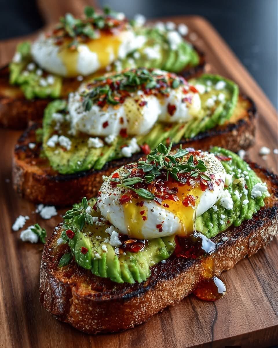 Burrata & Avocado Toasts with Hot Honey Drizzle are a simple yet striking dish that delivers bold flavor with minimal effort. Creamy avocado and burrata create a rich base, while the hot honey adds contrast and excitement. Perfect for brunch, casual entertaining, or a quick indulgent meal, these toasts prove that a few quality ingredients can turn everyday food into something memorable.