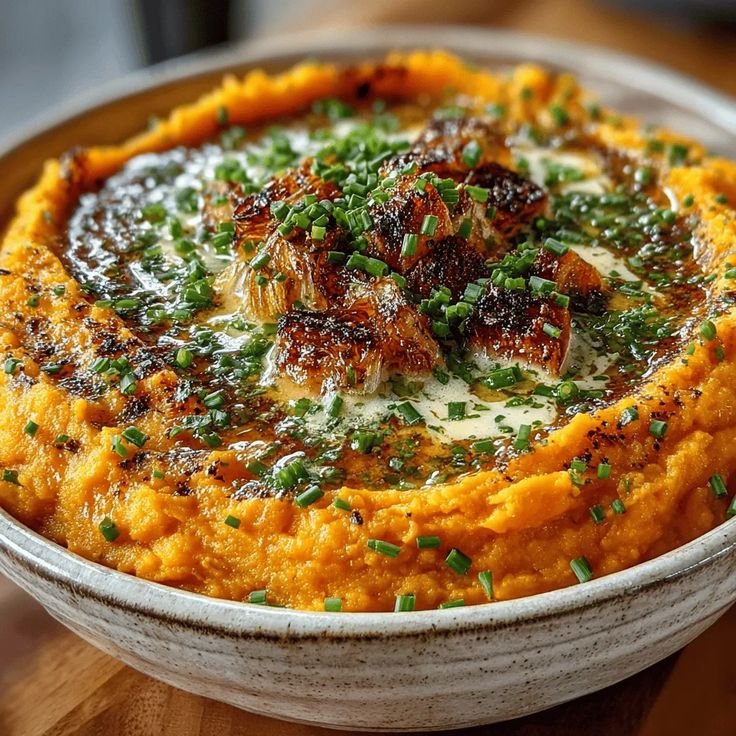 Creamy sweet potato mash folded with deeply caramelized onions, olive oil, and a hint of thyme. Naturally sweet, savory, and comforting—this side pairs beautifully with roast chicken, fish, lamb, or vegetarian bowls. No spice, just rich Mediterranean flavor.