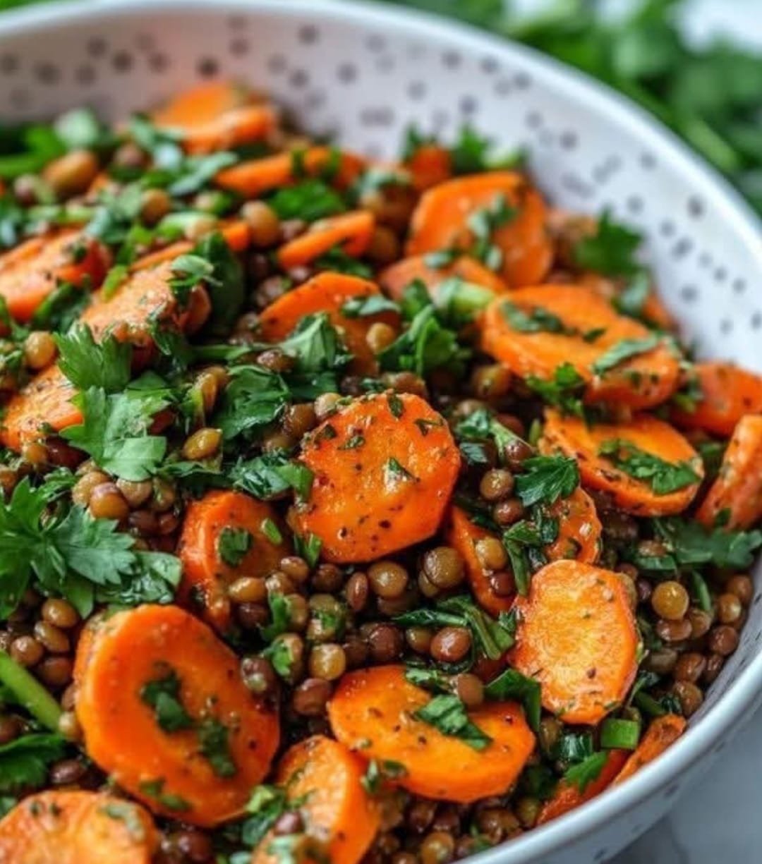 Carrot and Lentil Salad — earthy, slightly sweet, and tangy with a satisfying bite. It’s great warm or cold, perfect for lunch prep, potlucks, or as a fiber-rich side.