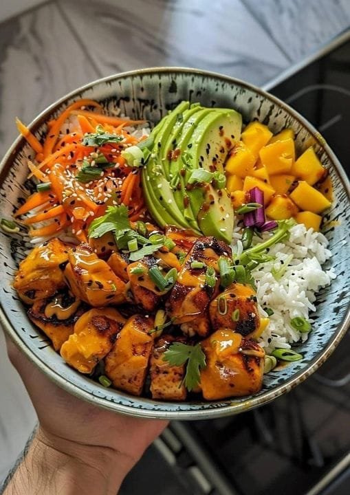 Spicy Thai Peanut Chicken Bowl This Spicy Thai Peanut Chicken Bowl is bursting with flavors! Thai peanut-glazed chicken bites are served over coconut rice, paired with a refreshing mango-avocado salsa, and topped with a creamy, spicy chili peanut sauce. It’s the perfect combination of sweet, savory, and a little heat! Ingredients: Thai Peanut-Glazed Chicken: 1 … Read more