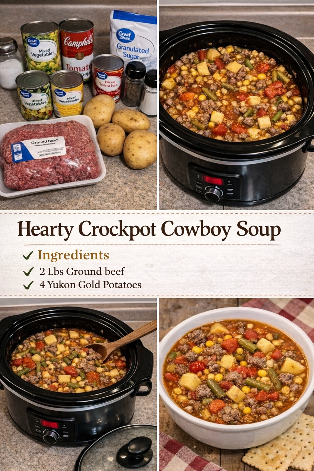🤠 Hearty Crockpot Cowboy Soup 📖 Description Hearty Crockpot Cowboy Soup is a bold, stick-to-your-ribs comfort meal packed with ground beef, beans, potatoes, vegetables, and rich tomato broth. It’s warm, filling, and loaded with classic Southwestern flavor. Everything simmers low and slow in the crockpot, blending into a thick, satisfying soup that’s perfect for chilly … Read more