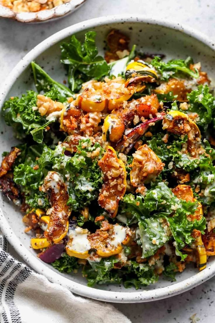 Mediterranean Herby kale pesto pasta with walnuts and feta