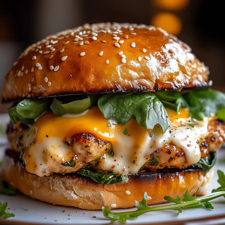 Cheddar Spinach Chicken Burger Recipe