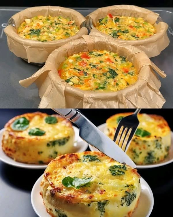 ✔️ You can use a muffin tin for mini quiches or a regular pie dish for a larger version.