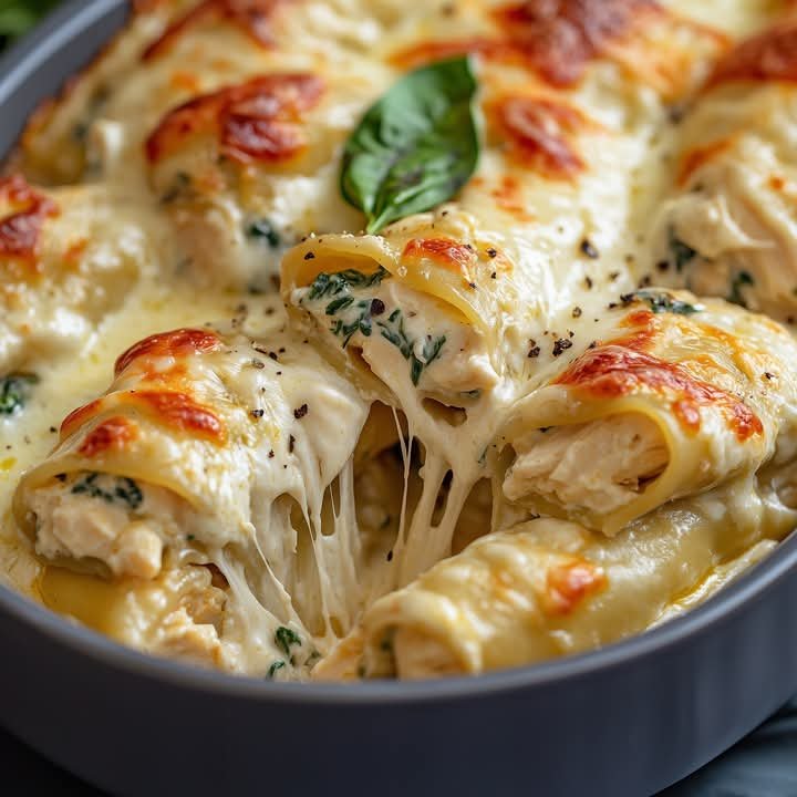 This Cheesy Chicken Alfredo Stuffed Manicotti is the ultimate comfort food! Tender manicotti pasta shells are stuffed with a creamy, cheesy mixture of shredded chicken, ricotta, and mozzarella, then smothered in a luscious homemade Alfredo sauce and baked to golden perfection. This dish is perfect for a cozy family dinner, potluck, or even a make-ahead freezer meal.