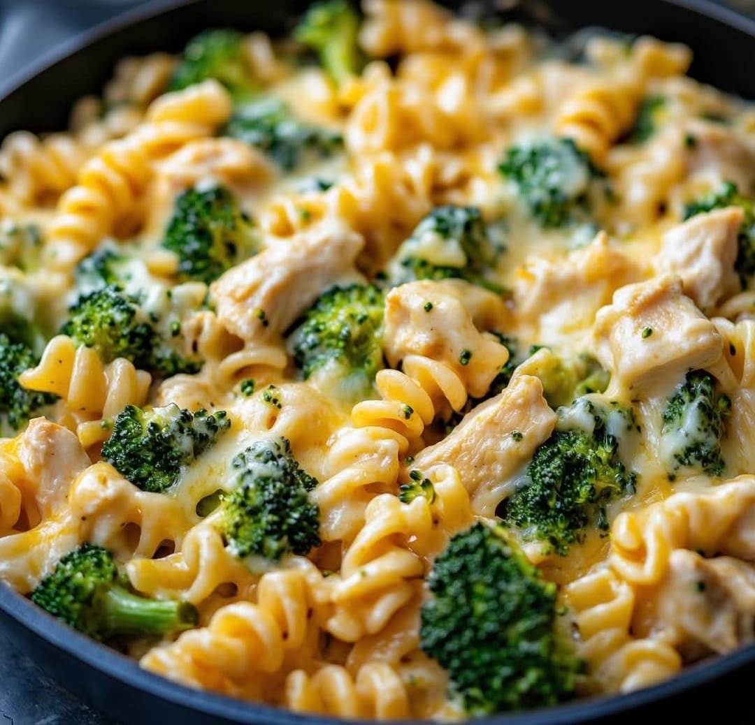 This one-skillet Cheesy Ranch Chicken and Broccoli Pasta is a quick and comforting dinner packed with flavor. Juicy chicken, tender broccoli, and pasta are coated in a creamy, cheesy ranch sauce that makes every bite delicious. Perfect for busy weeknights, this meal is ready in under 30 minutes and is sure to be a family favorite!