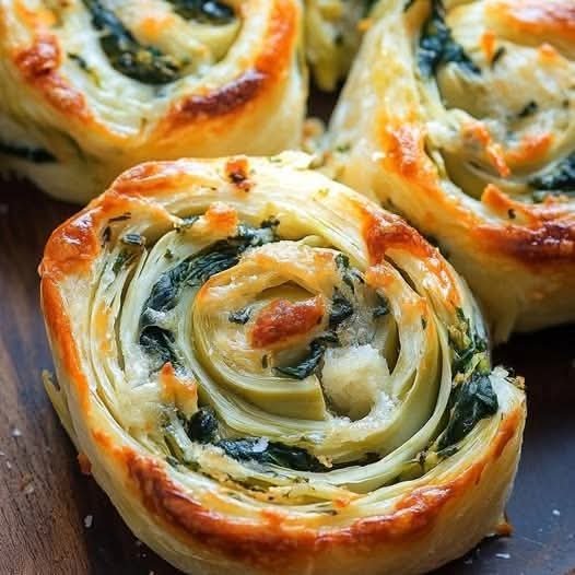 Elevate your snack game with these irresistible Cheesy Spinach and Artichoke Pinwheels! This show-stopping recipe combines the creamy richness of spinach and artichoke dip with the crispy, golden goodness of puff pastry, all wrapped up in a neat and easy-to-eat pinwheel.