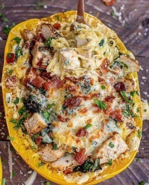 Enjoy your Chicken Alfredo Stuffed Spaghetti Squash!
