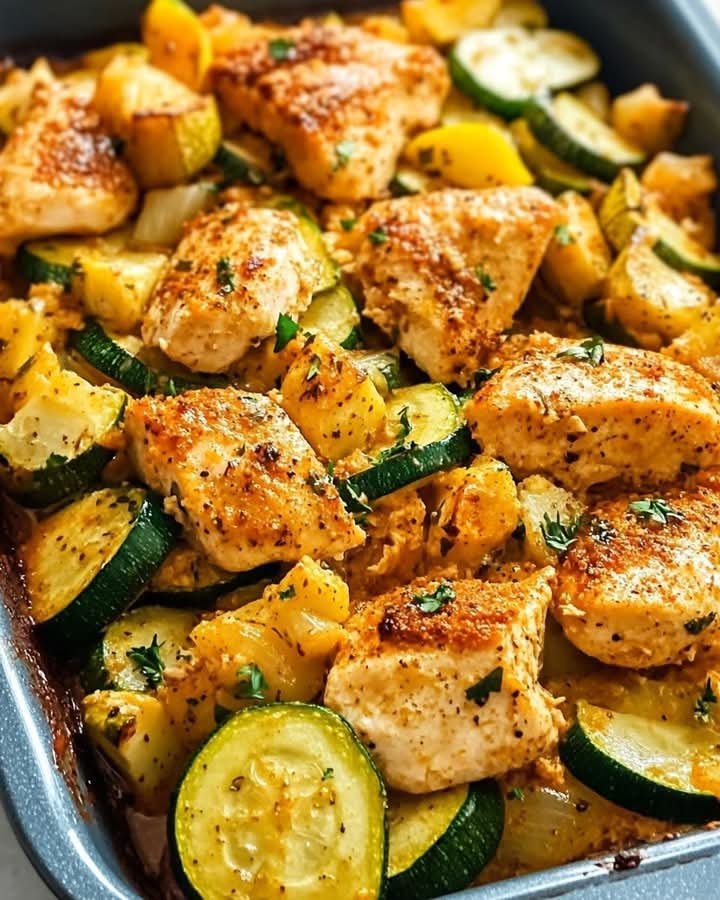 A hearty, healthy, and easy-to-make one-pan meal featuring tender chicken breasts baked with a colorful medley of vegetables, lightly seasoned with herbs and olive oil. This dish is perfect for meal prep or a family dinner, offering balanced nutrition and loads of flavor.