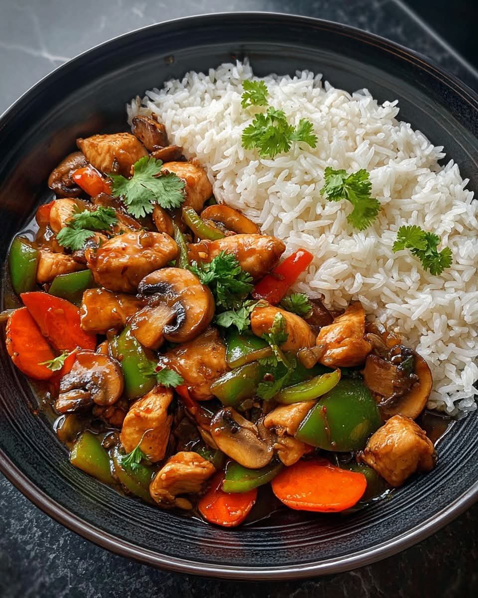This stir fry combines tender chicken, vibrant vegetables, and a savory garlic soy sauce served over fluffy rice. It’s a balanced, quick weeknight dinner that delivers restaurant-style flavor in under 30 minutes.