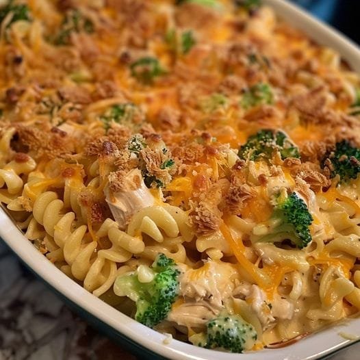 Savor “Comfort Classic: Chicken Noodle Casserole’s” warm, soothing tastes. This well-liked recipe is ideal for family meals or get-togethers since it mixes delicate chicken, substantial noodles, and a creamy, cheesy sauce to produce a filling supper. Easy to make and incredibly decadent, this dish will quickly become a mainstay in your recipe library.