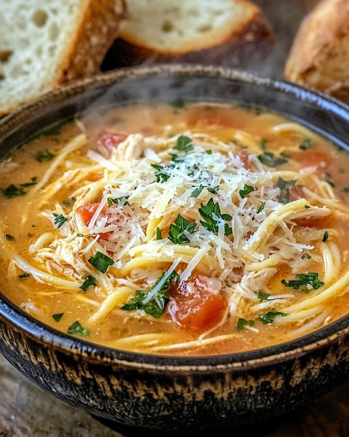 Chicken Parmesan Soup is a cozy, hearty twist on the classic Italian-American favorite—Chicken Parmesan. This comforting dish features shredded chicken, a tomato-rich broth infused with Italian herbs, pasta, and melty cheese. It captures all the flavors of Chicken Parmesan in a warm, spoonable form that’s perfect for weeknight dinners or cold days.